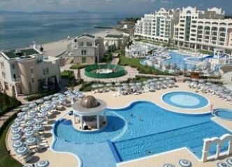 Хотелски комплекс Сънсет Ризорт е разположен на самия морски бряг, прилежащата плажна ивица е дълга 400 м, пясъкът е мек и ситен. Сънсет Ризорт е в непосредствена близост до главния път Варна - Бургас, но на достатъчно разстояние, за да се осигури една спокойна атмосфера на гостите. Южният плаж на гр. Поморие се простира в тих залив. Той е един от най-безопасните и екологично чисти плажове в България. Дължината му е около 1000 м, а широчината достига до 100 м. В хотела: Сънсет Ризорт се състои от 5 апартхотела и 6 луксозни булевардни вили, с обща застроена площ от 115000 кв.м. Четири външни басейни, два пул бара, водни атракции, разположени на повече от 3500 кв.м, вътрешен басейн, изкуствена река, която вие своя път сред зелени площи с екзотични дървета и цветни лехи, детски водни пързалки, кафе и коктейл барове, ресторанти, СПА и Уелнес център, мултифункционална зала, спортни съоръжения, боулинг, магазини, детски клуб, салон за красота, подземни гаражи и външен паркинг, всичко това превръща Сънсет Ризорт в луксозен европейски хотелски комплекс с необходимите удобства за една първокласна почивка. Стаи: Комплексът предлага следните типове помещения – студиа /35 кв. м./ само в сграда Ета, апартаменти с една спалня - до 50 кв.м., апартаменти с две спални - до 70 кв.м., апартаменти с две спални - до 110 кв.м. Всички помещения предлагат: кухненски бокс, маса за хранене, кабелна телевизия, климатична инсталация, тераса с морски/парков изглед, телефон за директна връзка, санитарен възел с вана, душ кабина, сешоар, сейф под наем. Ресторант: На територията на хотелския комплекс са разположени общо 4 основни (бюфетни) ресторанта; 5 а ла картни ресторанта с различен тип кухня - френска, италианска, азиатска, рибни специалитети, грилхаус; както и 4 лоби бара, 2 външни бара, витамин бар, пиано и нощен бар, Виенска сладкарница, Сънсет Кафе. Безплатни Услуги: Вътрешен басейн (отопляем в началото и края на сезона) с интегрирана детска секция и мини детска пързалка, джакузи, от 1 до 3 външни басейна с интегрирана детска секция, детска пързалка (10.00-12.00 ч. и 14.00-16.00 ч.), един детски басейн; Шезлонзи, чадъри (според свободните такива) и плажни халвии на басейна и на плажа. Шалтета за шезлонгите на басейните Спорт: